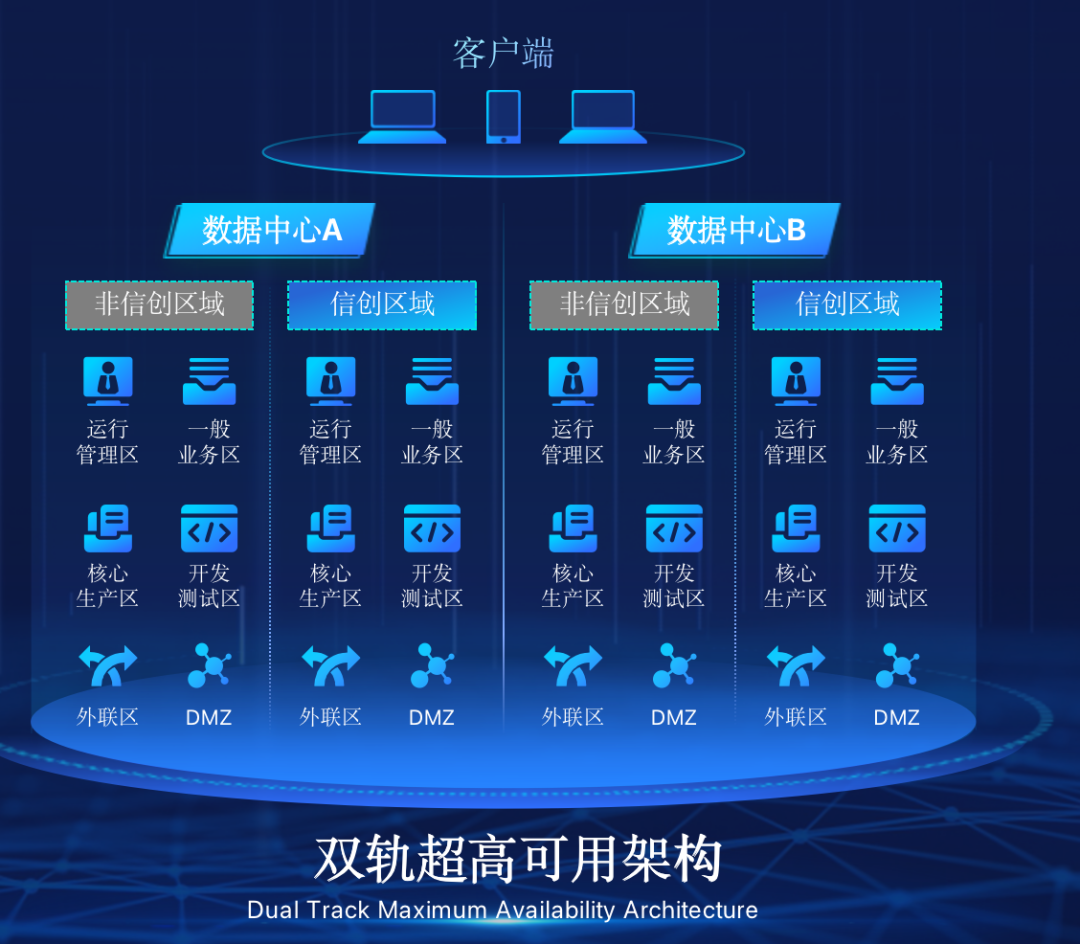 leyu.樂(lè)魚(yú)在企業(yè)面臨自主創(chuàng)新IT基礎(chǔ)重構(gòu)過(guò)程中,推出的全新架構(gòu)雙軌超高可用架構(gòu)(簡(jiǎn)稱DTMAA),在雙活數(shù)據(jù)中心的分區(qū)調(diào)度基礎(chǔ)上,添加每個(gè)數(shù)據(jù)中心內(nèi)信創(chuàng)域和非信創(chuàng)域的分域調(diào)度,來(lái)實(shí)現(xiàn)分區(qū)分域協(xié)同的多活雙軌超高可用。